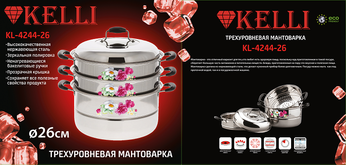 Мантоварка нержавеющей стали 26см 3-х ярус KELLI KL-4244-26