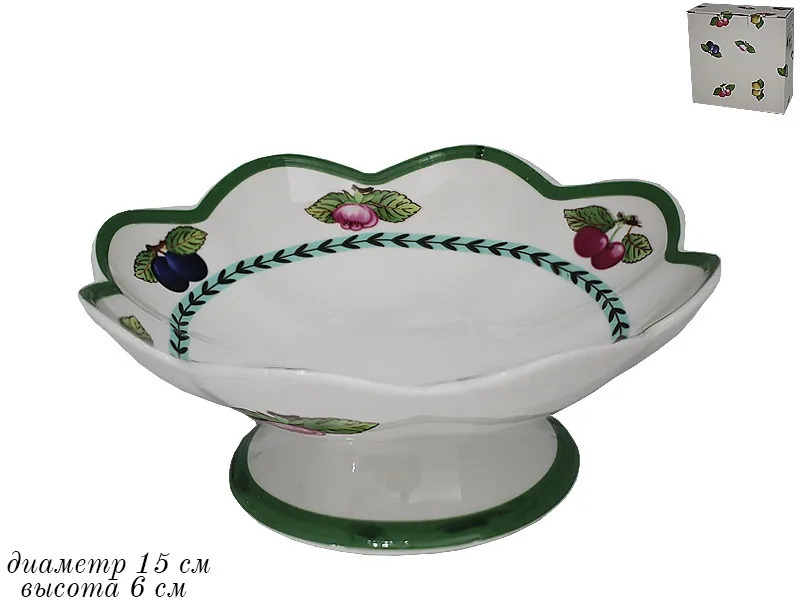 Ваза на ножке фарфор 15см *ФРУКТЫ* в под.уп. 105-818 (х32)