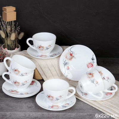 Набор ЧАЙНЫЙ *Китай* Опалов/стекло круг 220мл 12пр. 191124 (7327) (х8)