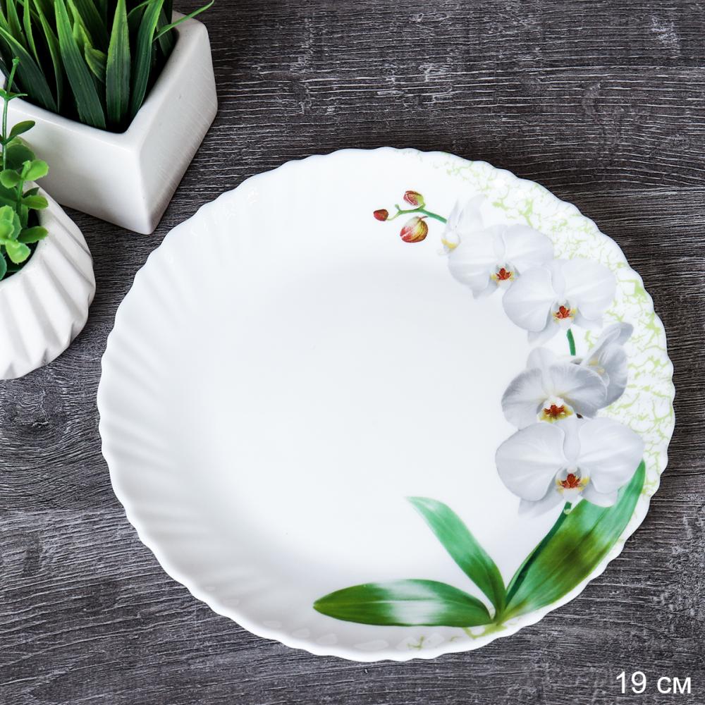 Тарелка Опаловое стекло 190мм /030075СЕ ВВ408-1 (/36) Белая орхидея