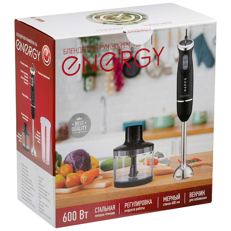 Погружной блендер оснащен мощным мотором для быстрой и эффективной обработки продуктов. Корпус блендера изготовлен из прочного пластика. Все погружные части и ножи блендера выполнены из долговечной нержавеющей стали, которая отлично подходит для приготовления блюд любой температуры.