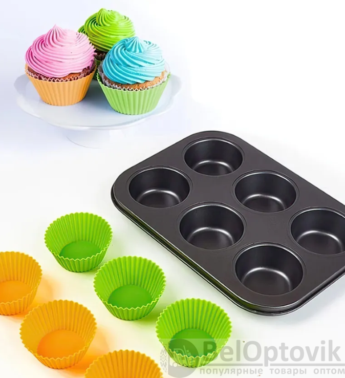 Форма для ВЫПЕЧКИ кекса метал+силикон 6 ячеек S.U.N