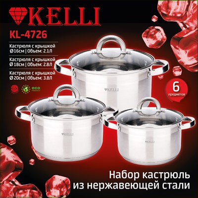 Набор Кастрюль Kelli 12пр.(2.1л/3 л/ 4 л/ 6.5л.) KL-4204