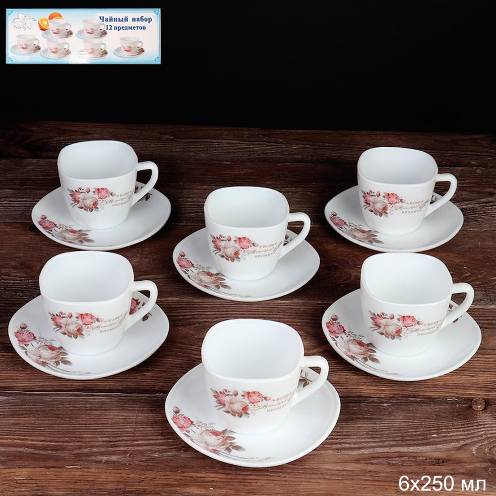 Набор ЧАЙНЫЙ *Китай* Опалов/стекло квад 250мл 12пр. FBD220-6A (6916) (х8)