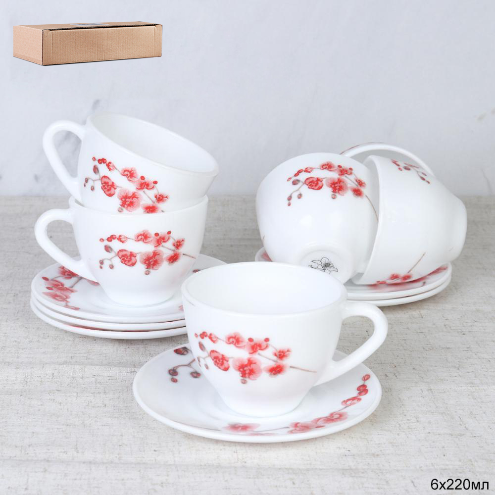 Набор ЧАЙНЫЙ *Китай* Опалов/стекло круг 220мл 12пр. GB220/GD55-6A (6755) (х8)